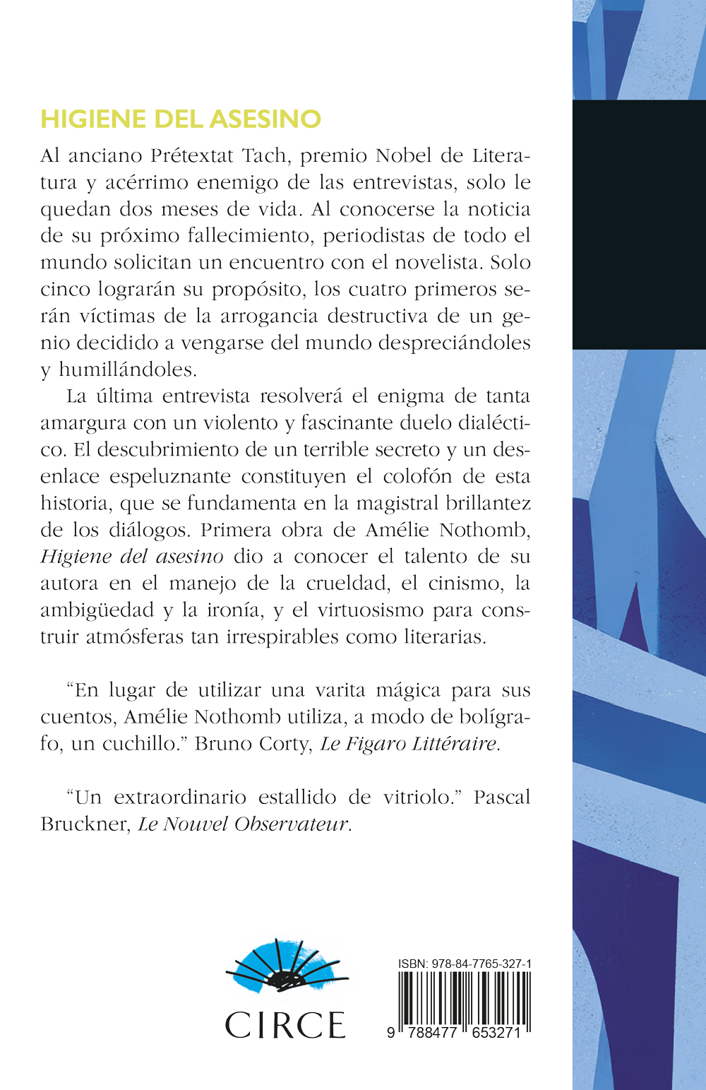 Primera obra de Amélie Nothomb, Higiene del asesino dio a conocer el talento de su autora en el manejo de la crueldad, el cinismo, la ambigüedad y la ironía, y el virtuosismo para construir atmósferas tan irrespirables como literarias.